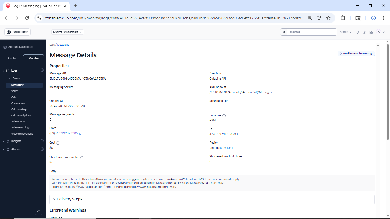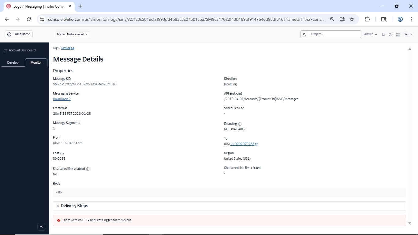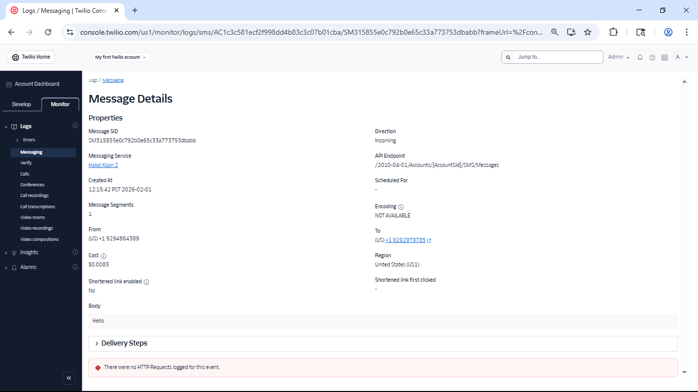 Sample Message #1 — Incoming: Hello